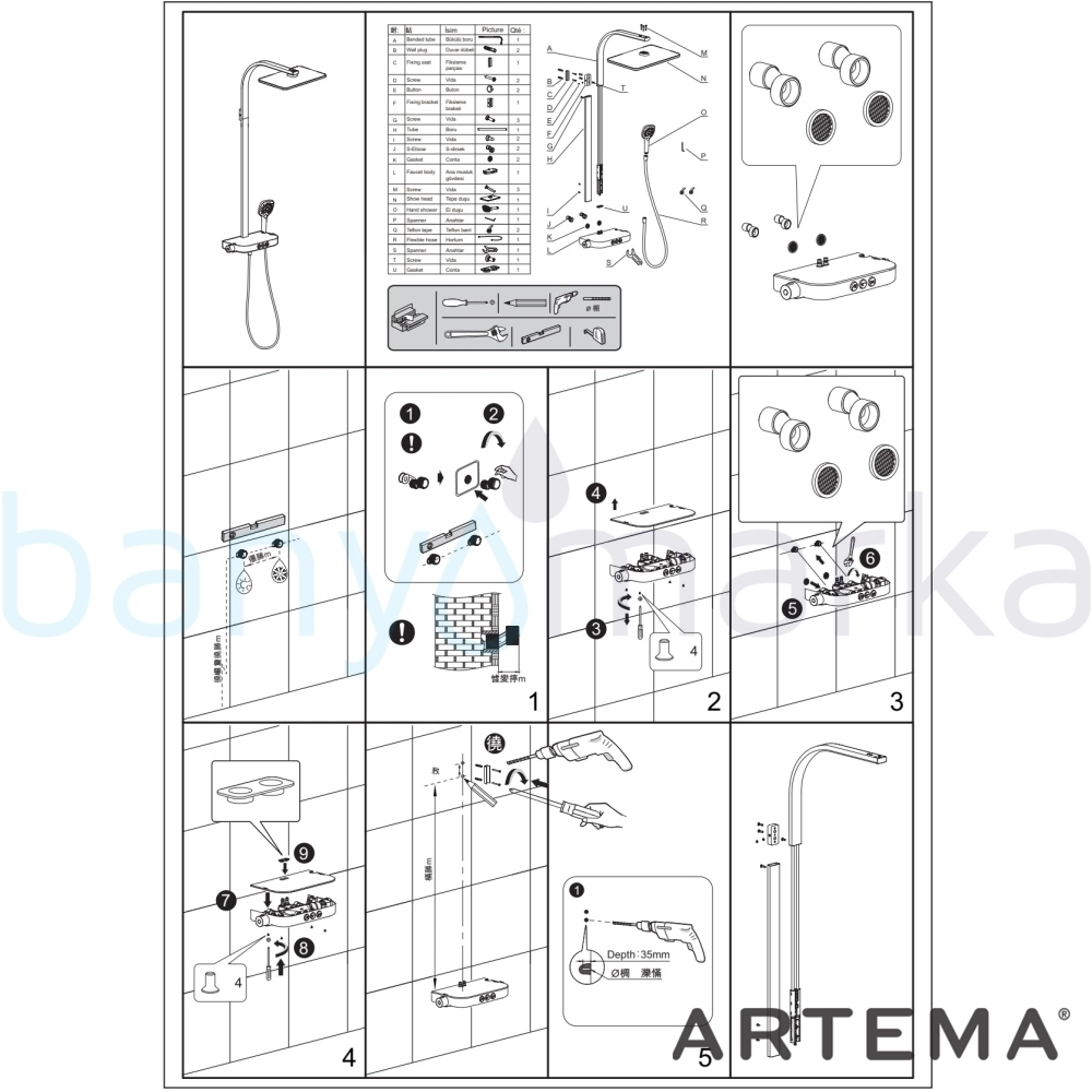 | Ürün Adı: | Artema Aquacontrol Charm 360 3F Duş Kolonu ve Termostatik Duş Bataryası Sistemi |