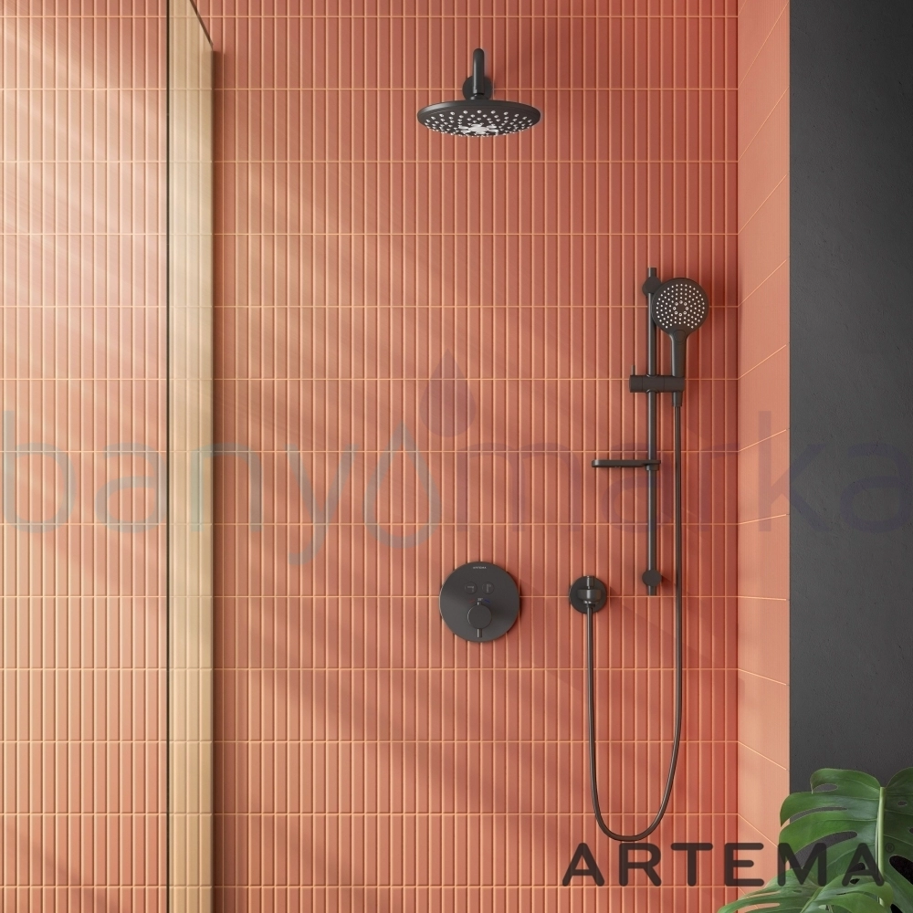 Artema AquaHeat Termostatik Ankastre Banyo Bataryası (Sıva Üstü Grubu), Mat Siyah