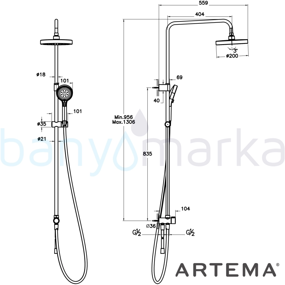 | Ürün Adı: | Artema Base Round 200 Duş Kolonu, Mat Siyah |