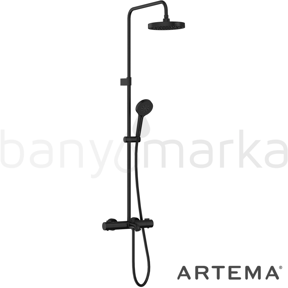 Artema Base Round 200 Duş Kolonu ve Termostatik Banyo Bataryası Sistemi, Mat Siyah - A4730336
