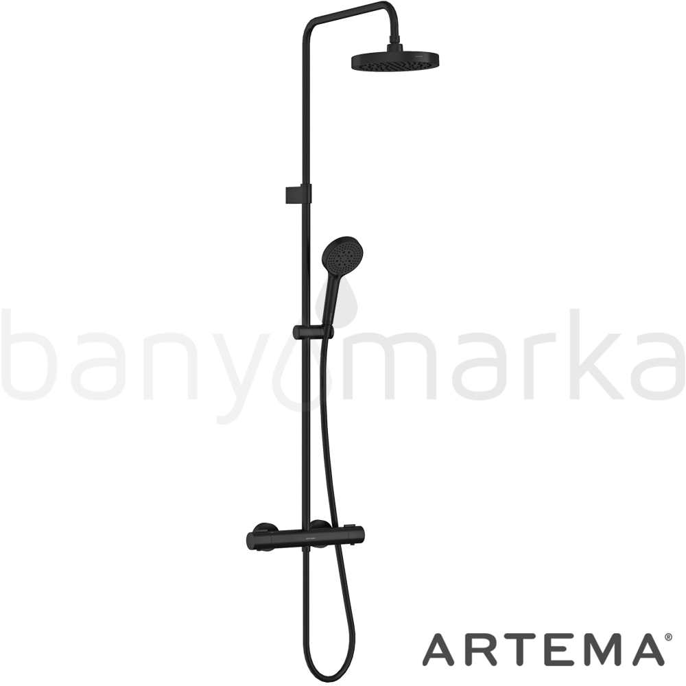 Artema Base Round 200 Duş Kolonu ve Termostatik Duş Bataryası Sistemi, Mat Siyah - A4730536