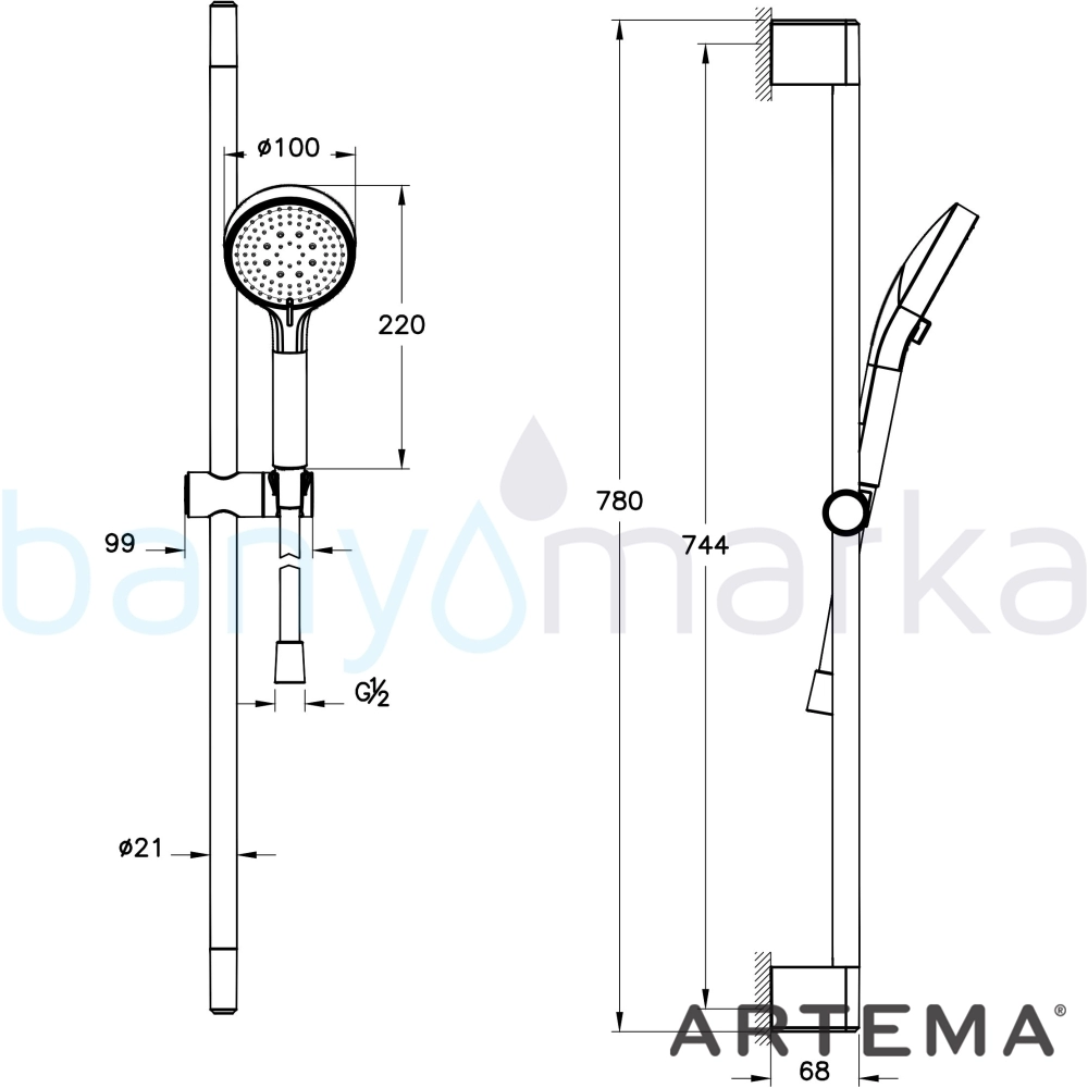 | Ürün Adı: | Artema Base Round 3F Sürgülü El Duşu Takımı, Mat Siyah |