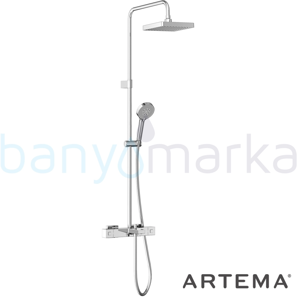 Artema Base Square 200 Duş Kolonu ve Termostatik Banyo Bataryası Sistemi - A47304