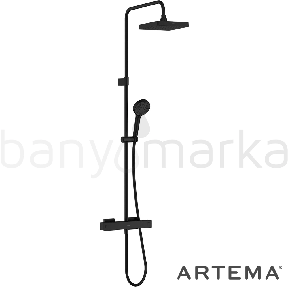 Artema Base Square 200 Duş Kolonu ve Termostatik Duş Bataryası Sistemi, Mat Siyah - A4730636