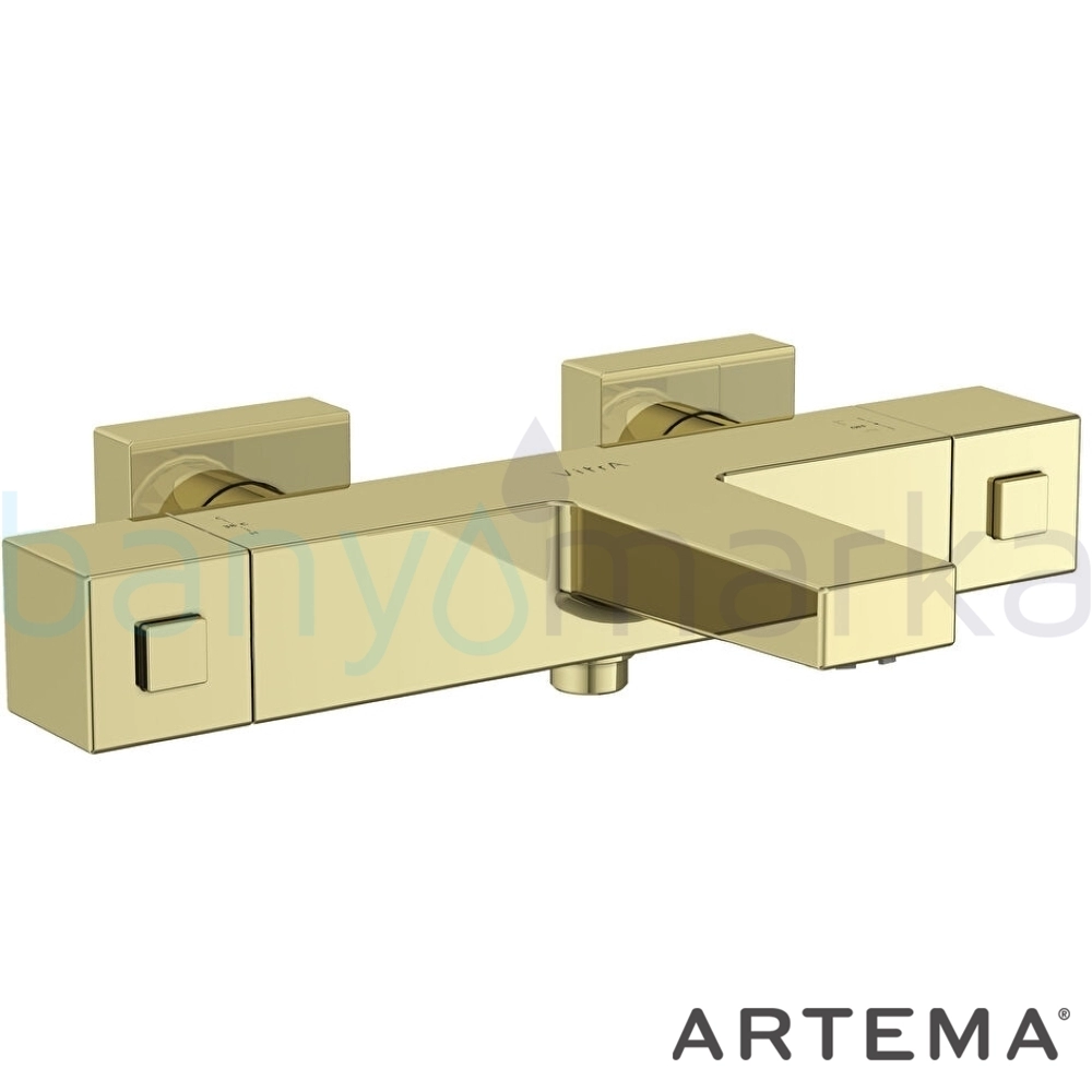 Artema Base Square Termostatik Banyo Bataryası, Soft Altın