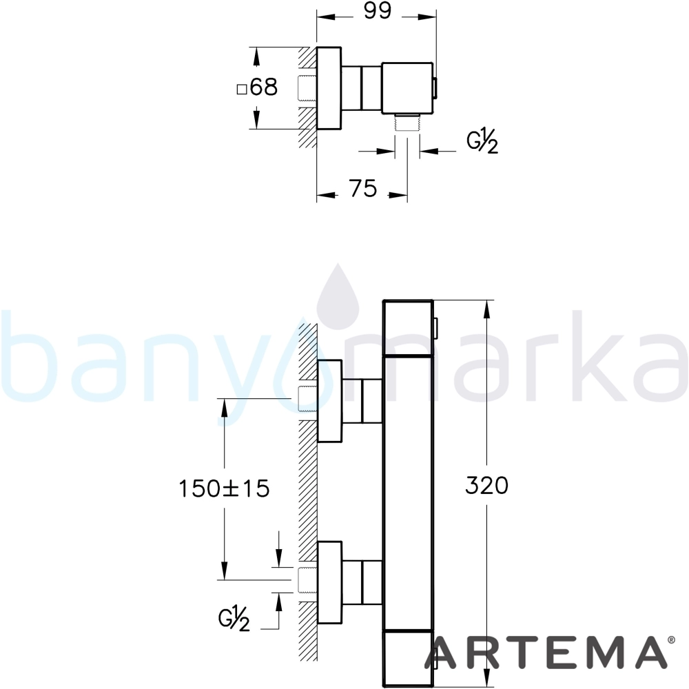 | Ürün Adı: | Artema Base Square Termostatik Duş Bataryası, Mat Siyah |