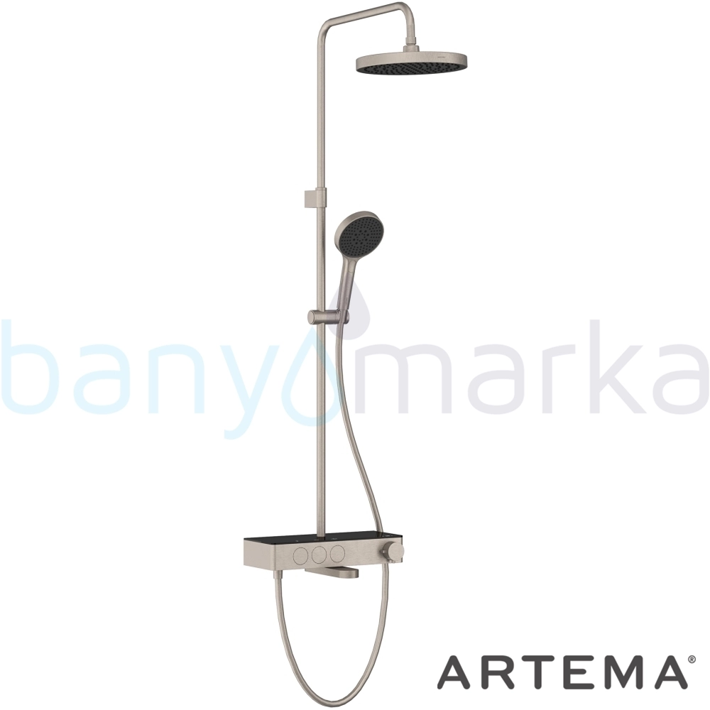 Artema Core Round 250 Duş Kolonu ve Termostatik Banyo Bataryası Sistemi, Fırçalı Nikel - A4730934