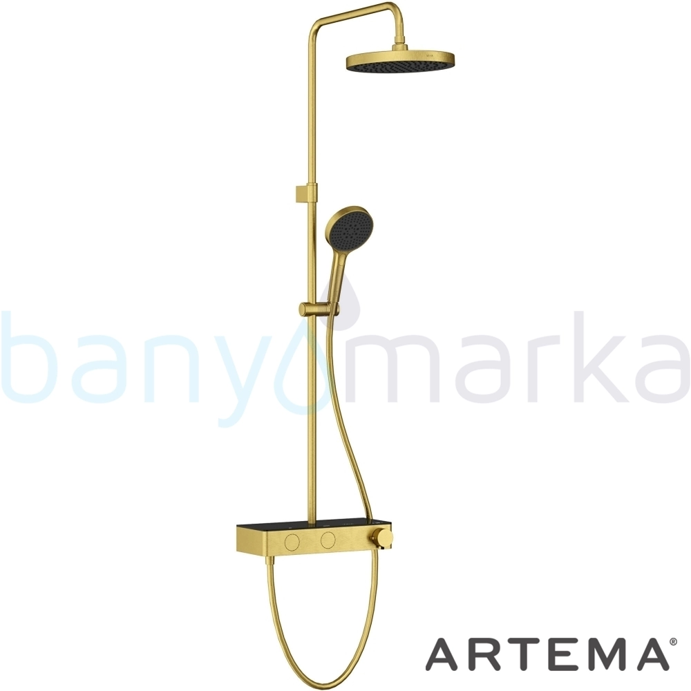Artema Core Round 250 Duş Kolonu ve Termostatik Duş Bataryası Sistemi, Fırçalı Altın - A4731125
