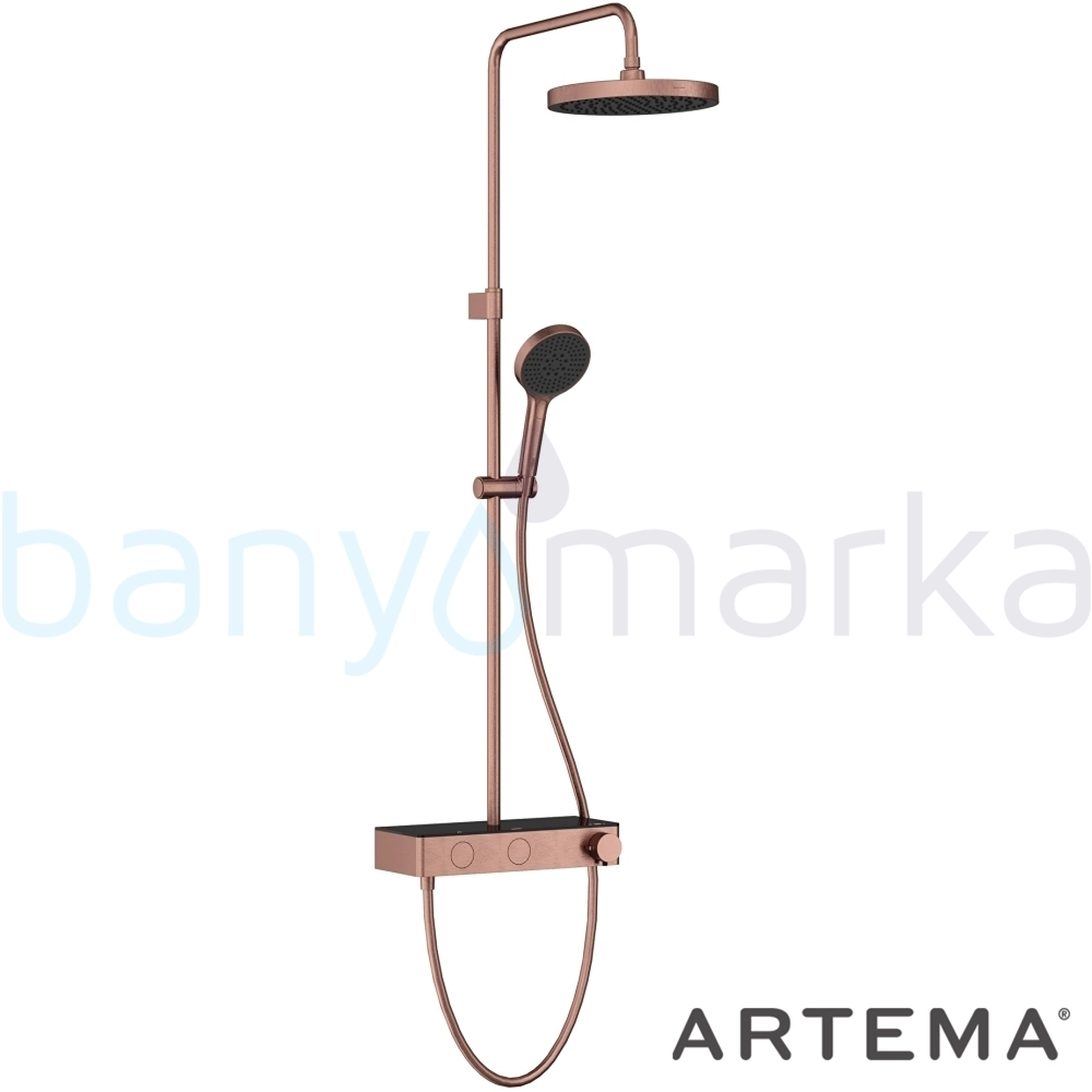 Artema Core Round 250 Duş Kolonu ve Termostatik Duş Bataryası Sistemi, Fırçalı Bakır - A4731124