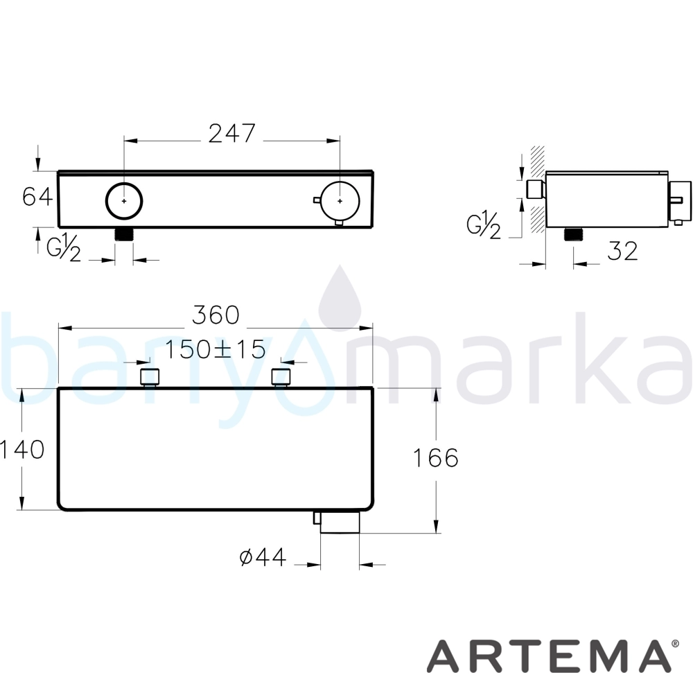 | Ürün Adı: | Artema Core Round Termostatik Duş Bataryası, Fırçalı Bakır |