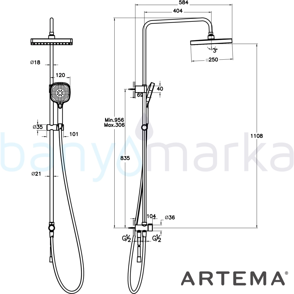| Ürün Adı: | Artema Core Square 250 Duş Kolonu, Soft Bakır |