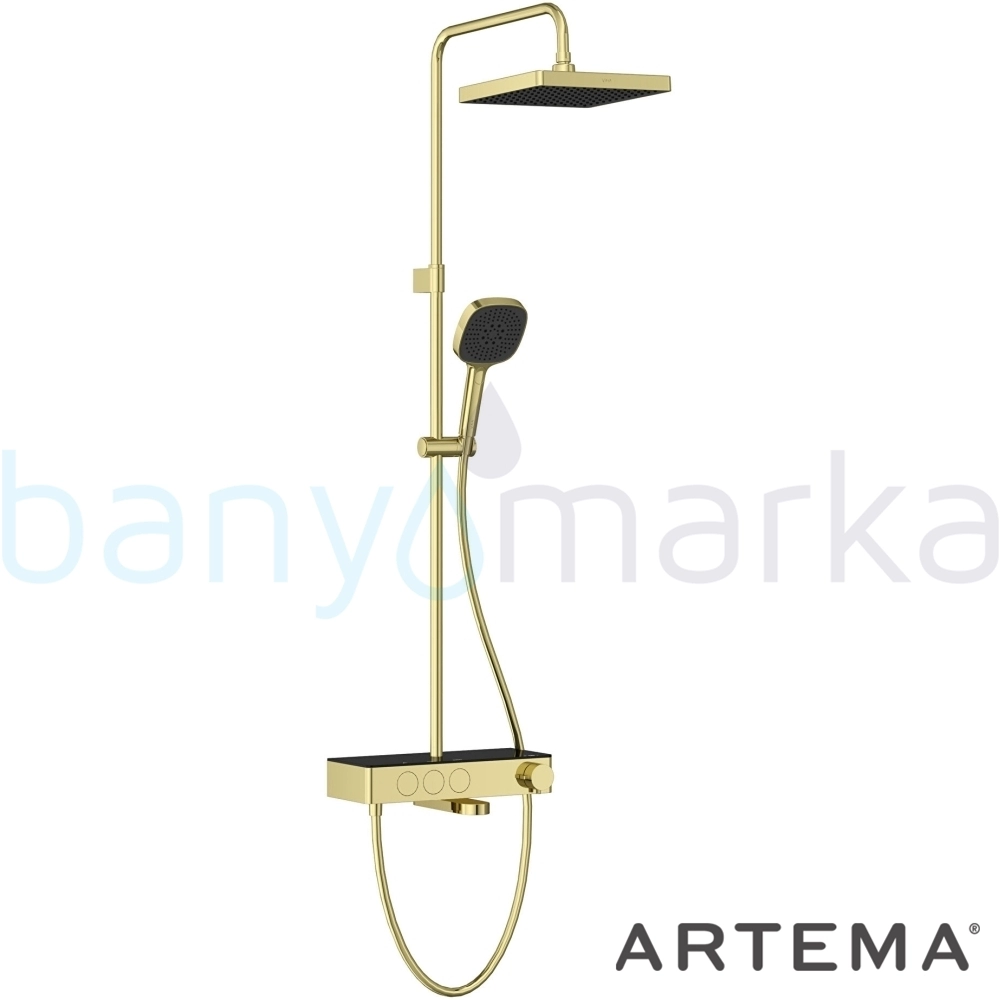Artema Core Square 250 Duş Kolonu ve Termostatik Banyo Bataryası Sistemi, Soft Altın - A4731074