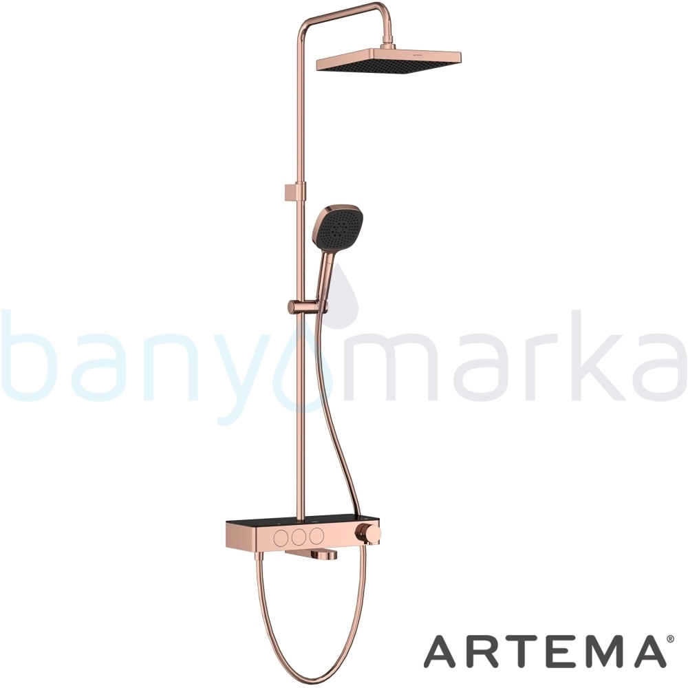 Artema Core Square 250 Duş Kolonu ve Termostatik Banyo Bataryası Sistemi, Soft Bakır