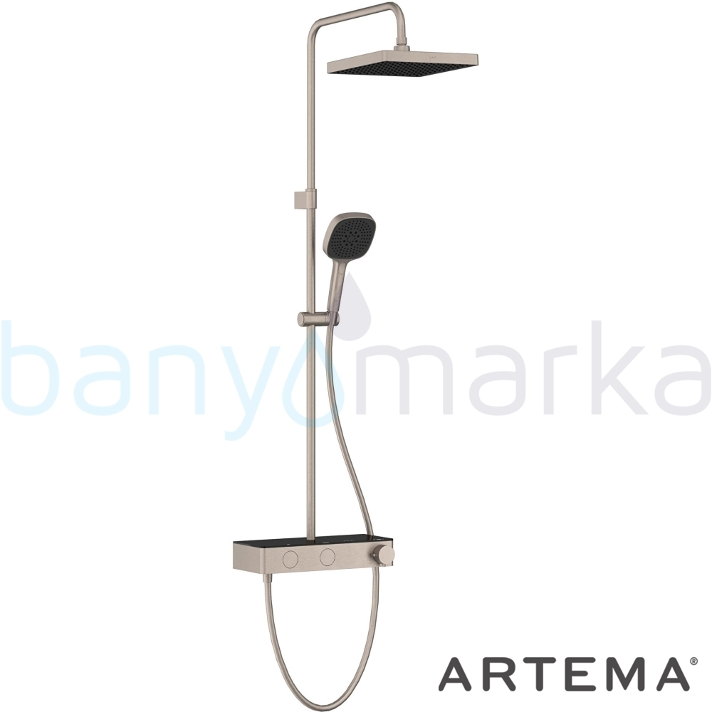 Artema Core Square 250 Duş Kolonu ve Termostatik Duş Bataryası Sistemi, Fırçalı Nikel - A4731234
