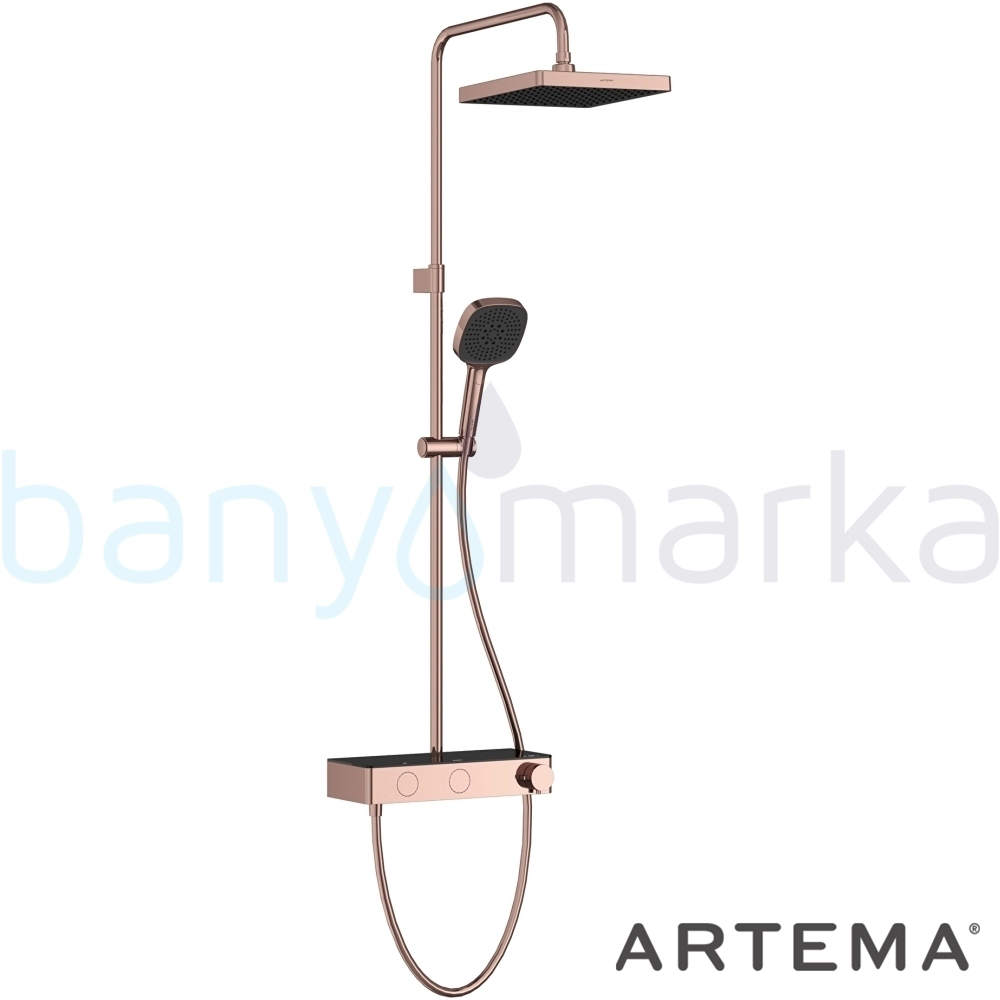Artema Core Square 250 Duş Kolonu ve Termostatik Duş Bataryası Sistemi, Soft Bakır - A4731229