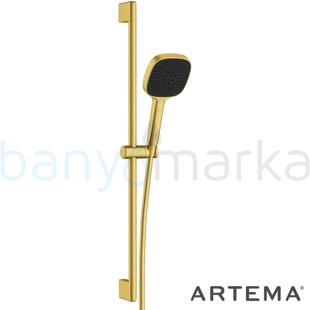 Artema Core Square 3F Sürgülü El Duşu Takımı, Fırçalı Altın - A4591725