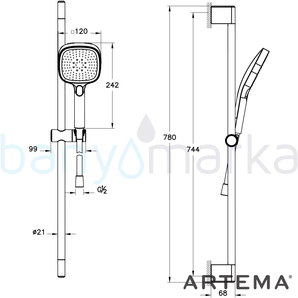 | Ürün Adı: | Artema Core Square 3F Sürgülü El Duşu Takımı, Fırçalı Altın |