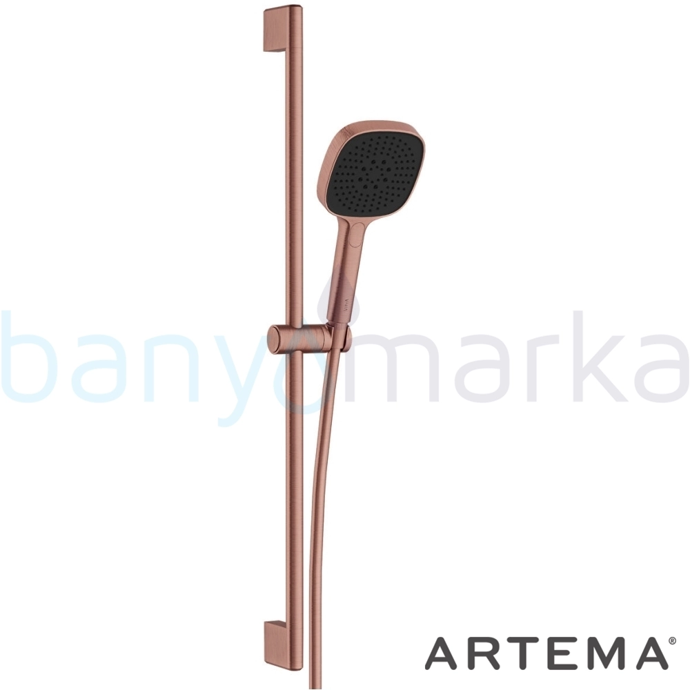 Artema Core Square 3F Sürgülü El Duşu Takımı, Fırçalı Bakır - A4591724
