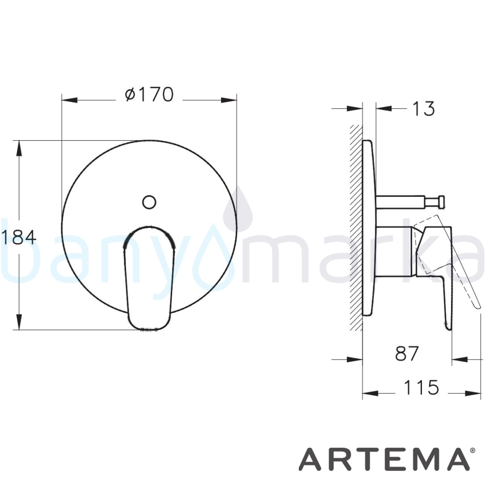 | Ürün Adı: | Artema Flow Soft Ankastre Banyo Bataryası, Mat Siyah (V-Box Sıva Üstü Grubu) |