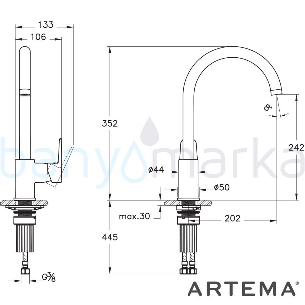 | Ürün Adı: | Artema Flow Soft Eviye Bataryası, Mat Siyah (C-Tip) |