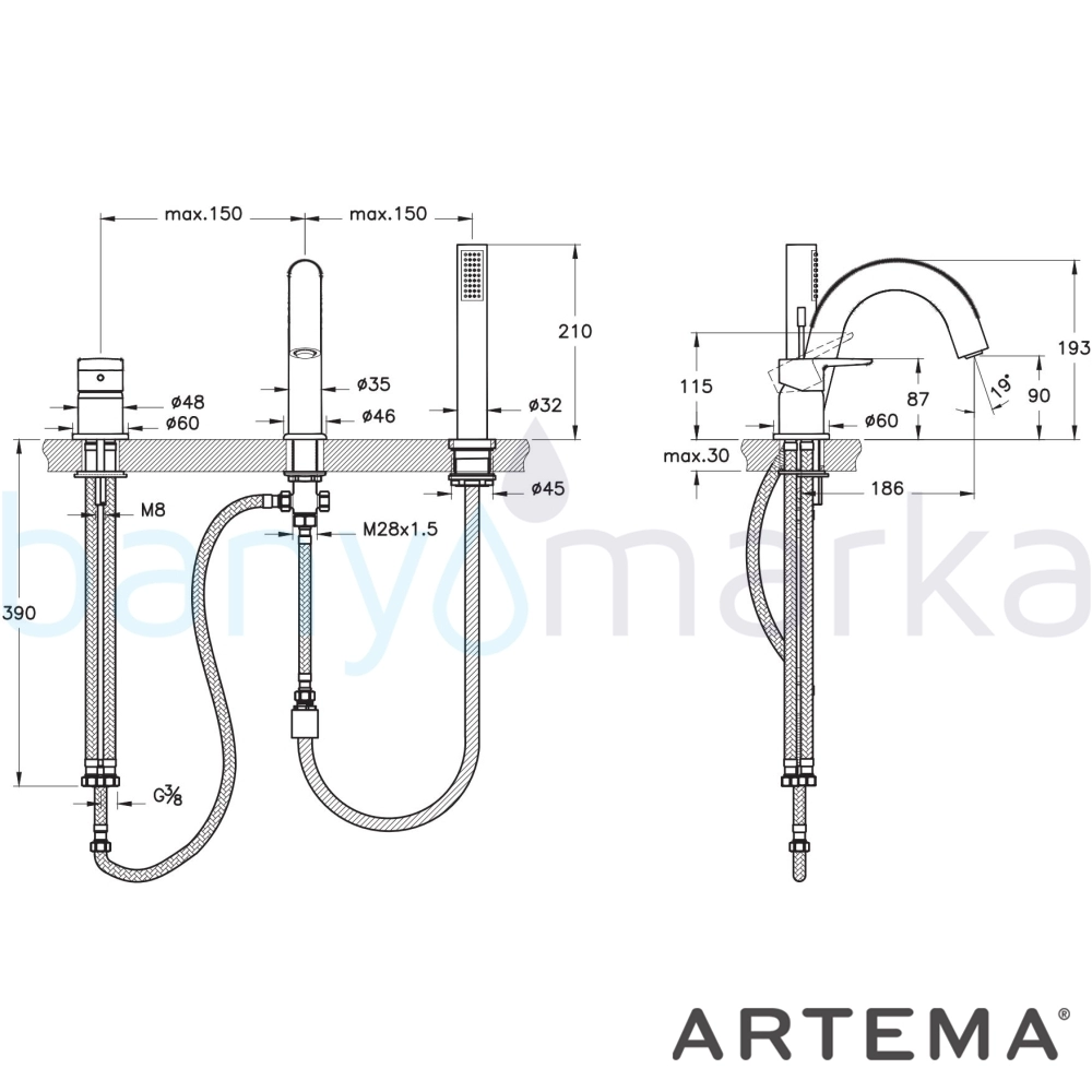 | Ürün Adı: | Artema Flow Soft Küvet Bataryası, Mat Siyah (3 Delikli) |