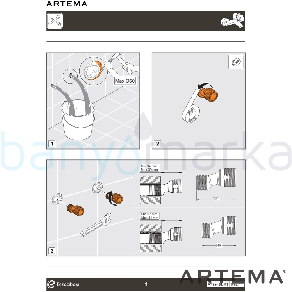| Uyarı ve Genel Açıklamalar: | El duşu çıkışı G 1/2"tir. Duş kumandası kilitlemelidir. Çıkış ucu uzunluğu 152 mm%u2019dir. Isı ve debi limitörlü özel kartuş |