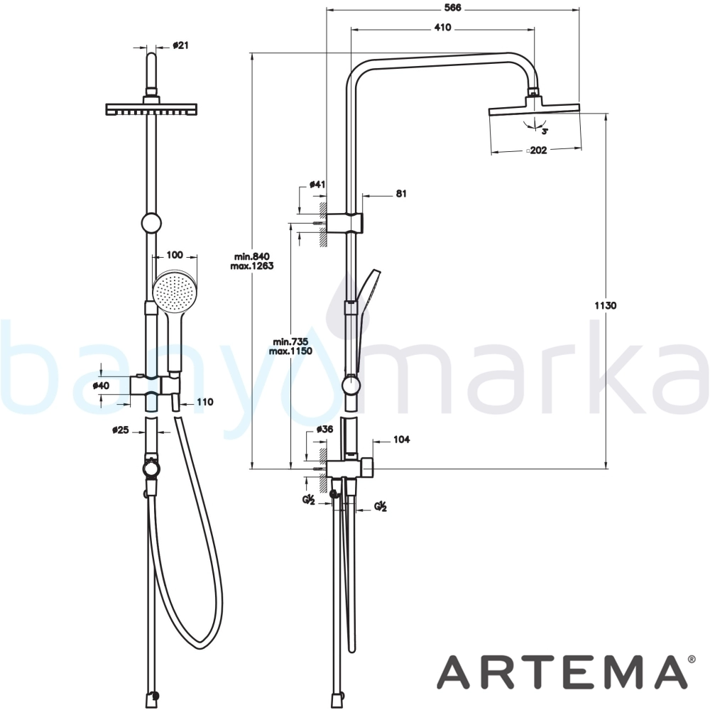 | Ürün Adı: | Artema Joy Square 200 Duş Kolonu |