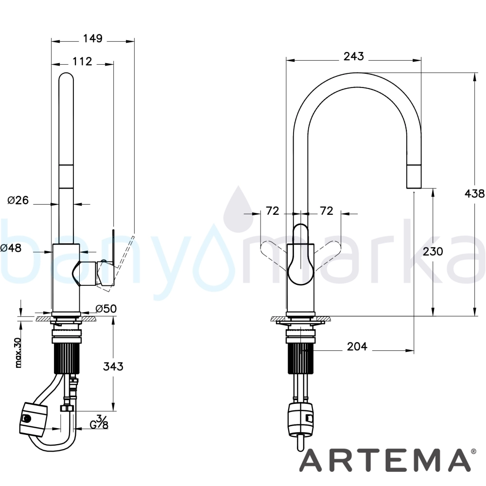 | Ürün Adı: | Artema Maestro Inox Pull-Down Eviye Bataryası, Paslanmaz Çelik |