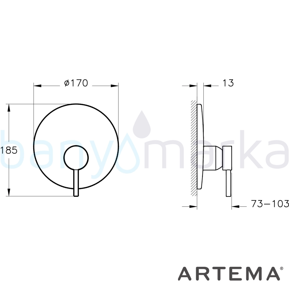 | Ürün Adı: | Artema Minimax Round Ankastre Duş Bataryası, Mat Siyah (V-Box Sıva Üstü Grubu) |