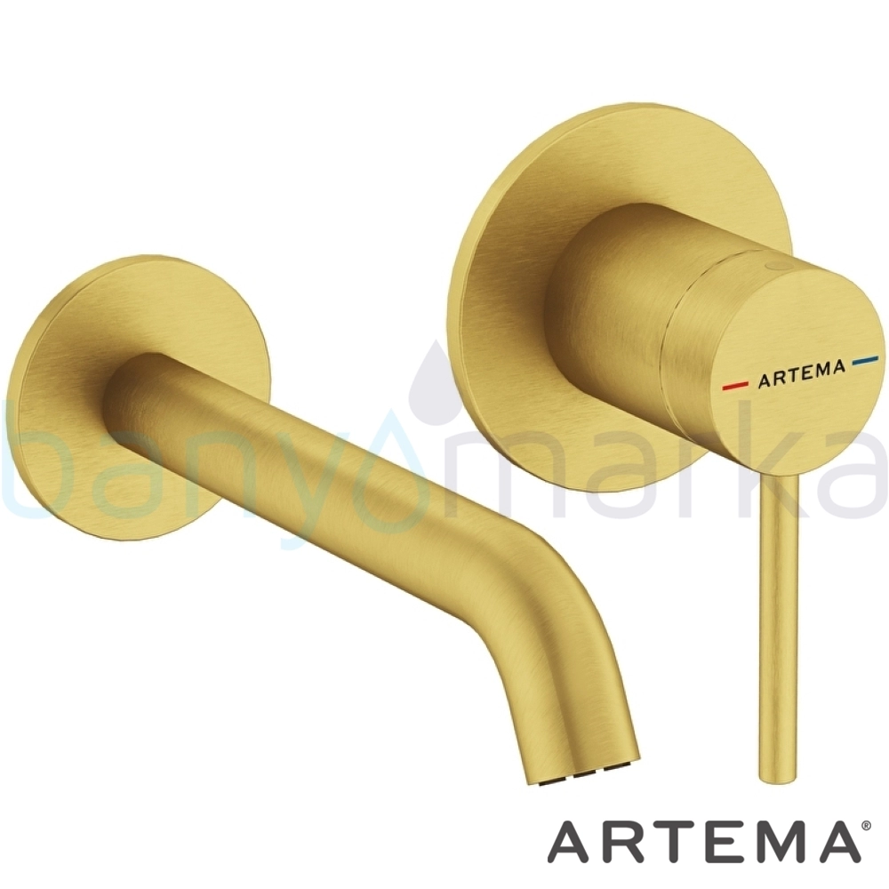 Artema Minimax Round Ankastre Lavabo Bataryası, Kısa, Fırçalı Altın (Sıva Üstü Grubu)