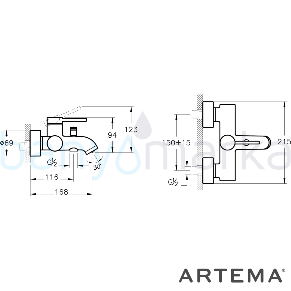 | Uyarı ve Genel Açıklamalar: | El duşu çıkışı G 1/2 tir. Duş kumandası kilitlemelidir. Çıkış ucu uzunluğu 168 mm dir. Isı ve debi limitörlü özel kartuş. |