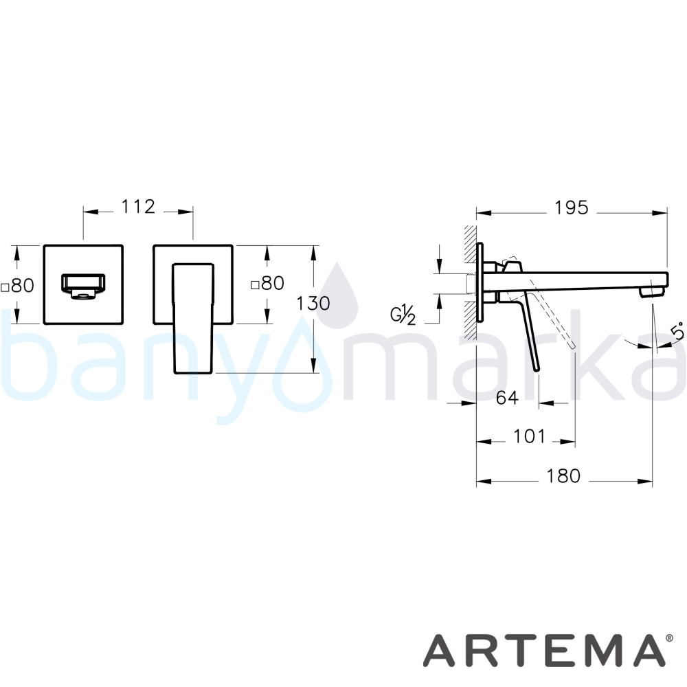 Artema Minimax Square Ankastre Lavabo Bataryası, Kısa (Sıva Üstü Grubu)