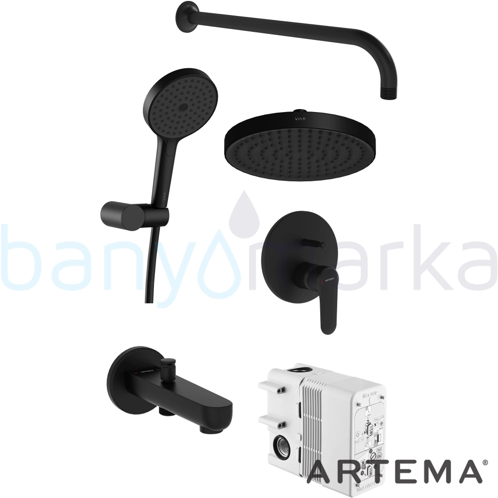 Artema Root Round Ankastre Banyo Seti, Mat Siyah