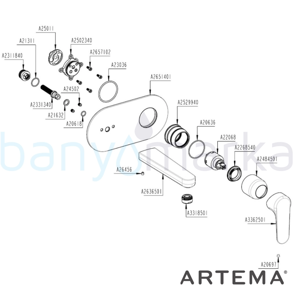 | Uyarı ve Genel Açıklamalar: | Sıva altı grubu ürüne dahil değildir, A42230 kodlu Artema Ankastre Lavabo Bataryası (Sıva Altı Grubu) ayrıca sipariş edilmelidir. |
