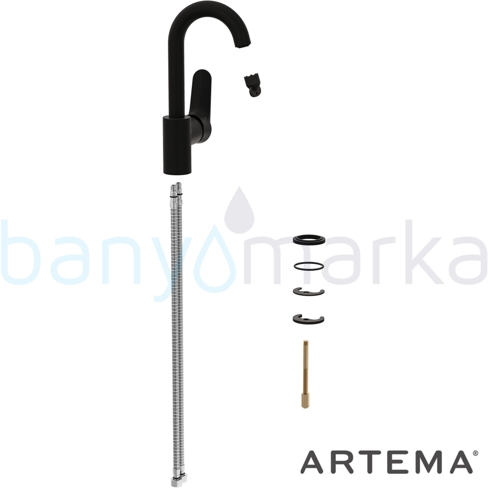 Artema Root Round Döner Borulu Lavabo Bataryası, Mat Siyah