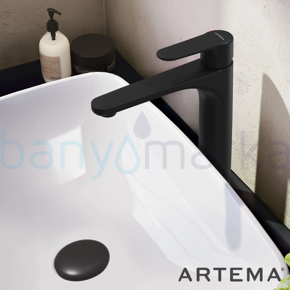 Artema Root Round Tezgah Üstü Lavabo Bataryası, Mat Siyah