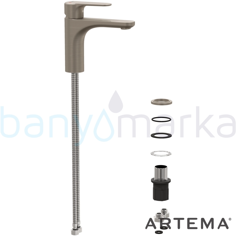 Artema Root Round Lavabo Bataryası, Fırçalı Nikel