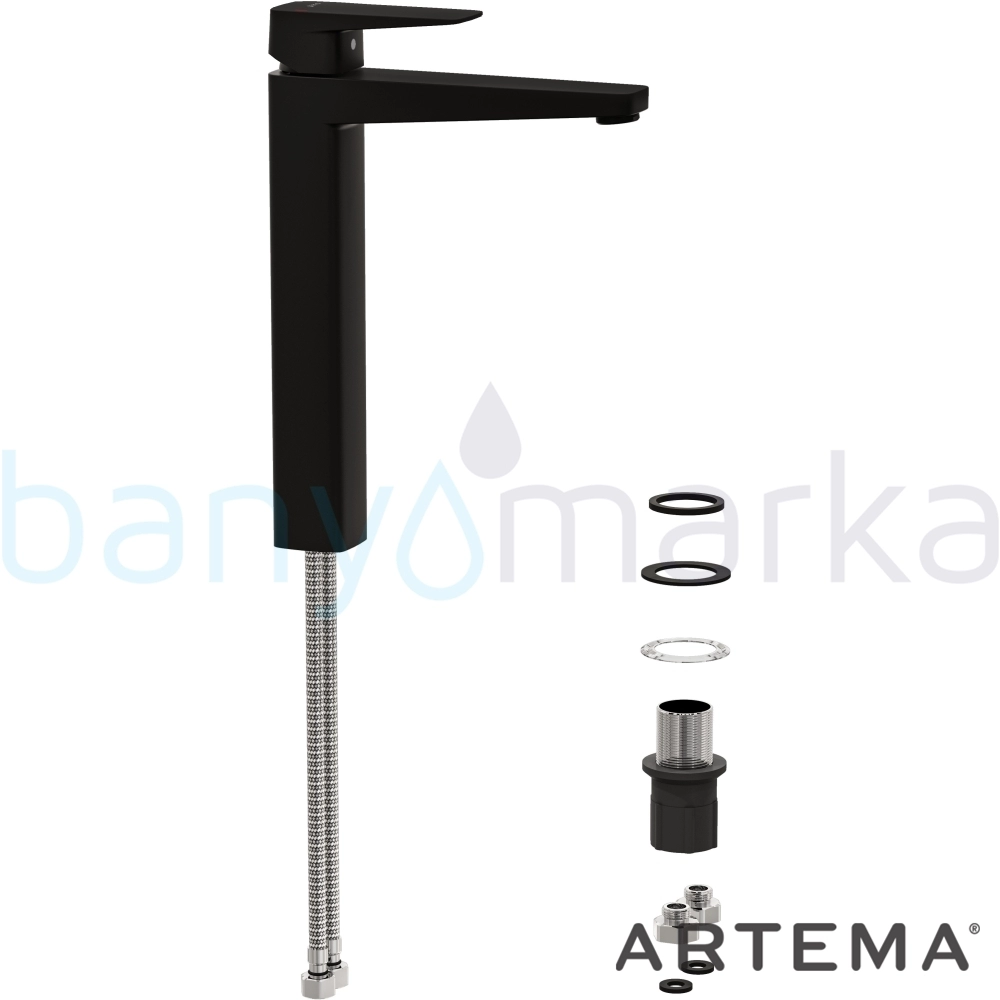 Artema Root Square Tezgah Üstü Lavabo Bataryası, Mat Siyah