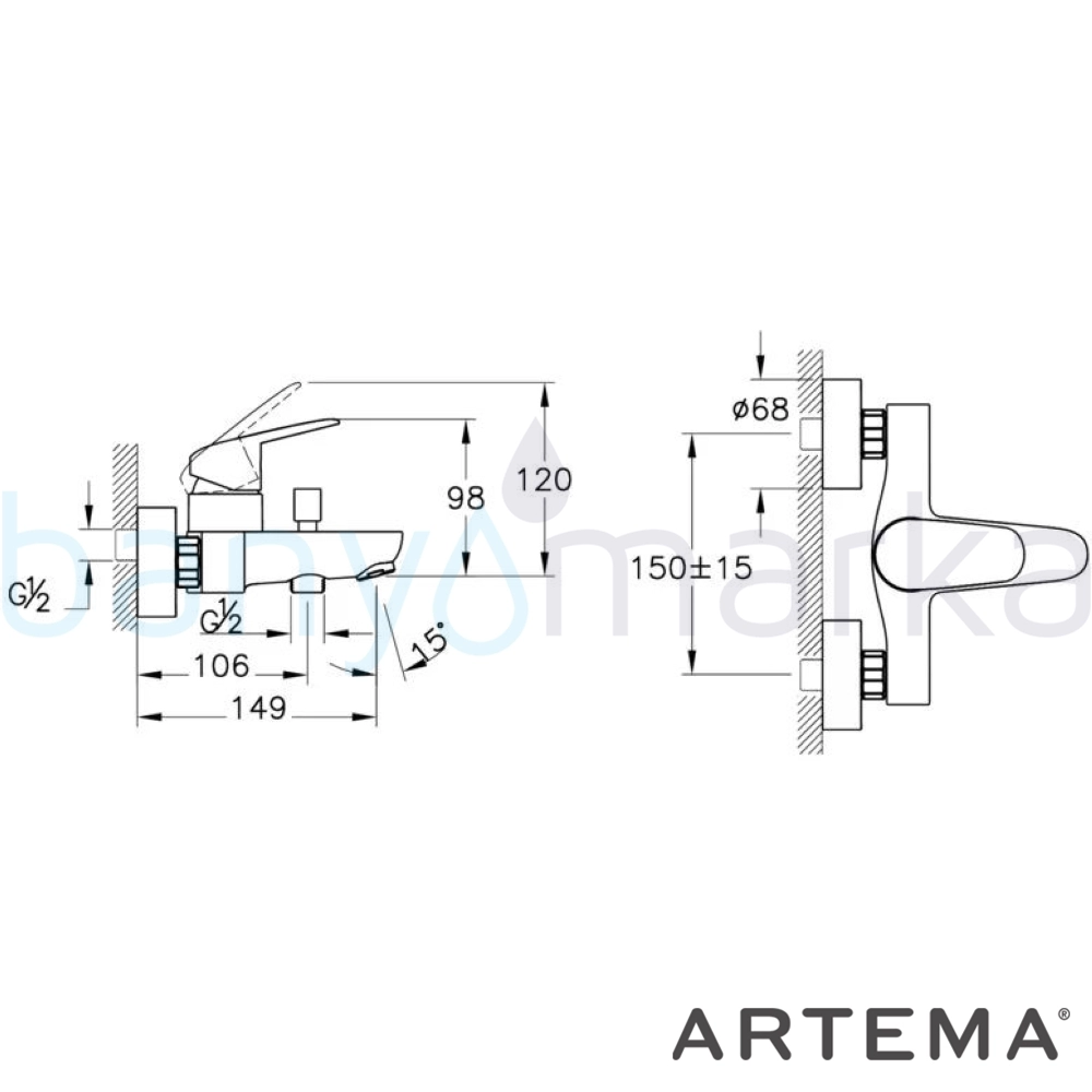 Marka: Artema Ürün Adı: Artema Shift T10 Banyo Bataryası Ürün Kodu: A43653 Seri: Shift T10 Yüzey Rengi: Krom Su Tasarrufu: Var-perlatör ve kartuş ile Çıkış Ucu Uzunluğu: 149 mm Perlatör Özelliği: Standart Açma / Kapama: Tek kumandalı Kartuş Özelliği: Isı ve debi ayarlı Ücretsiz Montaj: Yok Yetkili Servis Hizmeti: Var Garanti Süresi: 10 yıl Üretim Yeri: Türkiye Uyarı ve Genel Açıklamalar: El duşu çıkışı G 1/2 dir. Duş kumandası kilitlemelidir. Çıkış ucu uzunluğu 149 mm dir. Isı ve debi limitörlü özel kartuş.