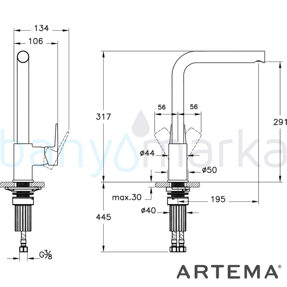 | Ürün Adı: | Artema Shift T30 Eviye Bataryası, Mat Siyah |