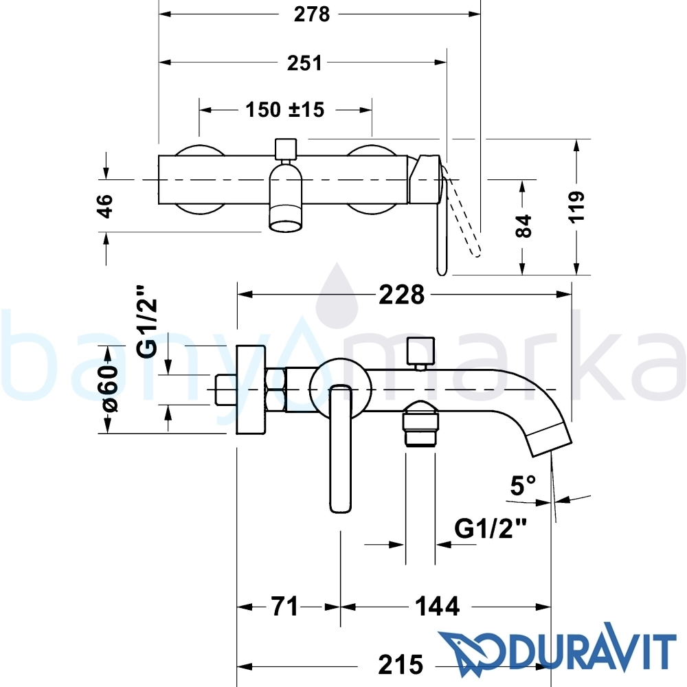 Marka: Duravit Ürün Adı: Duravit Balcoon Banyo Bataryası, Mat Siyah Ürün Kodu: BA5230000046 Seri: Balcoon Yüzey Rengi: Mat Siyah Tasarımcı: Patricia Urquiola Su Tasarrufu: Var Çıkış Ucu Uzunluğu: 144 mm Perlatör Özelliği: Açılı perlatör Açma / Kapama: Tek kumandalı Kartuş Özelliği: Seramik Salmastra Ücretsiz Montaj: Yok Yetkili Servis Hizmeti: Var Garanti Süresi: 5 yıl Üretim Yeri: Almanya Uyarı ve Genel Açıklamalar: Bağlantı türü: 1/2 inç, Seramik kartuş, önerilen çalışma basıncı: 1 - 5 bar, Spray modu: Normal akış, Değiştirici valf. Siyah Mat, Bağlantı türü: S-Bağlantıları, 1/2 inç, Akış hızı (3 bar): 21,5 l/min.