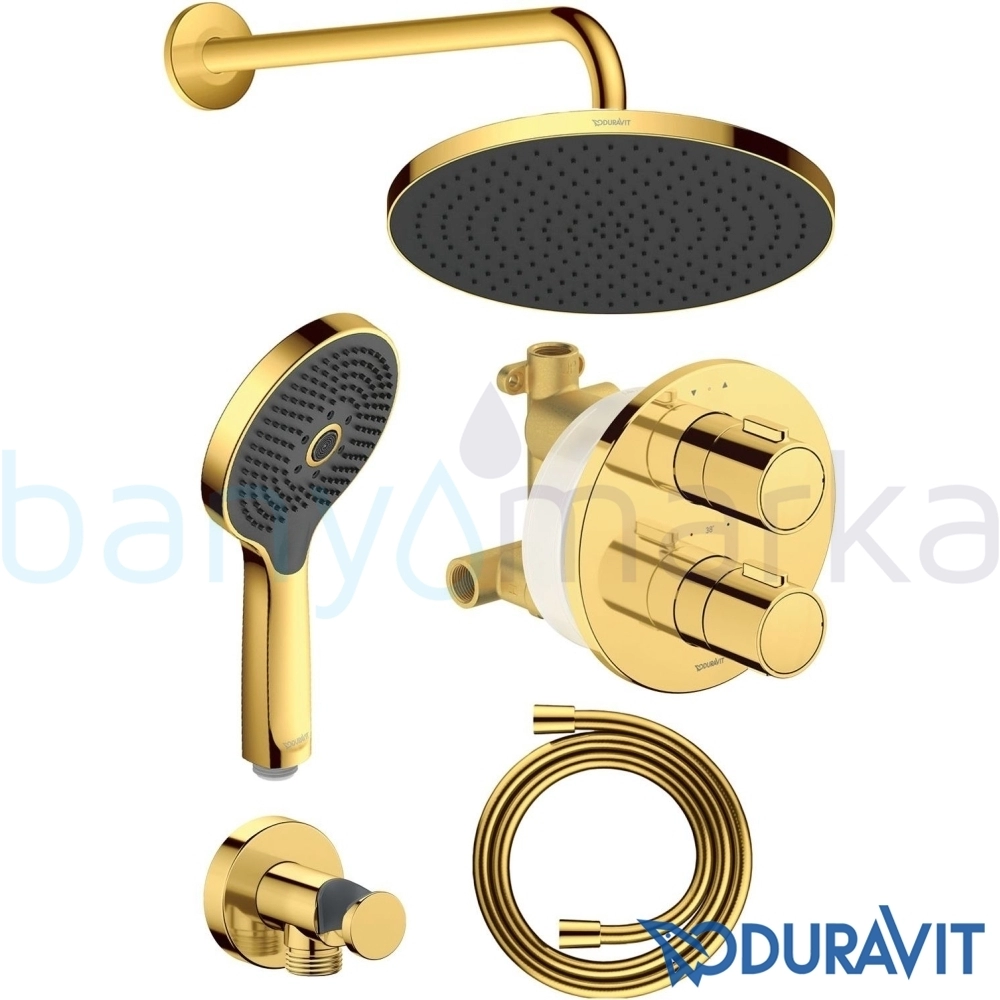 Duravit TH Ankastre Termostatik Banyo Bataryası, Tepe ve El Duşu Seti, Altın