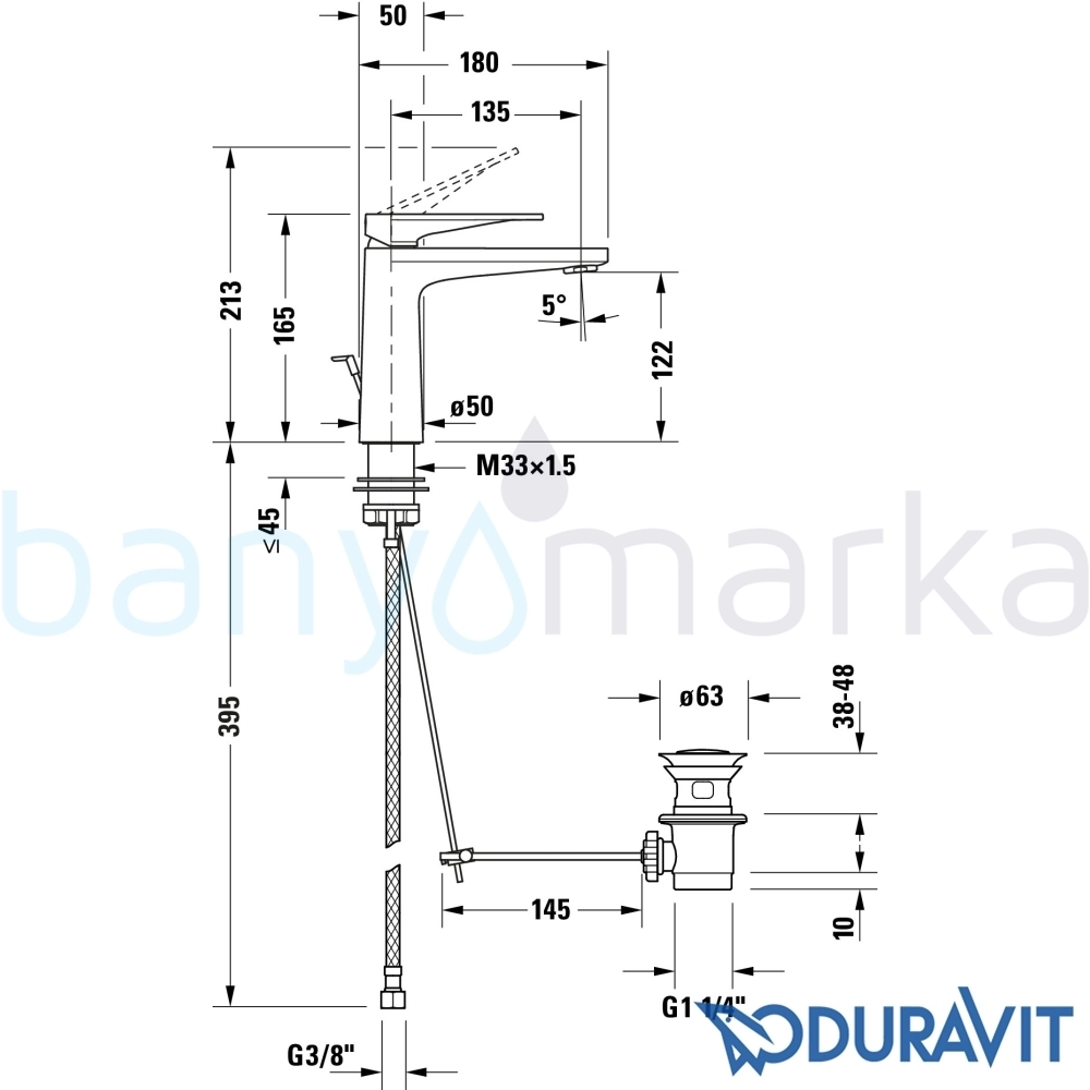 Marka: Duravit Ürün Adı: Duravit Tulum Lavabo Bataryası, Sifon Kumandalı, Mat Siyah (M Boy) Ürün Kodu: TU1020001046 Seri: Tulum Yüzey Rengi: Mat Siyah Tasarımcı: Philippe Starck Su Tasarrufu: Var Enerji Tasarrufu: Var Çıkış Ucu Uzunluğu: 135 mm Çıkış Ucu Yüksekliği: 122 mm Açma / Kapama: Tek kumandalı Sifon Kumandası: Var(Kumandalı sifon dahil) Ücretsiz Montaj: Yok Yetkili Servis Hizmeti: Var Garanti Süresi: 5 yıl Üretim Yeri: Almanya Uyarı ve Genel Açıklamalar: Seramik kartuş, Yükseklik: 165 mm, Çıkış boyu: 135 mm, Su şebekesi bağlantı türü: Fleks bağlantı hortumları, Hortum bağlantısı ölçüleri: 3/8 inç, Spray modu: Normal akış, Aerator, Sıcaklık limiti, önerilen çalışma basıncı: 1 - 5 bar, pop-up sifon kumandalı set, Kulp donanımı: açma kolu. Krom, Akış hızı (3 bar): 5 l/min, Gürültü sınıfı: II. Garanti Bilgisi:5 Yıl Duravit garantisi -