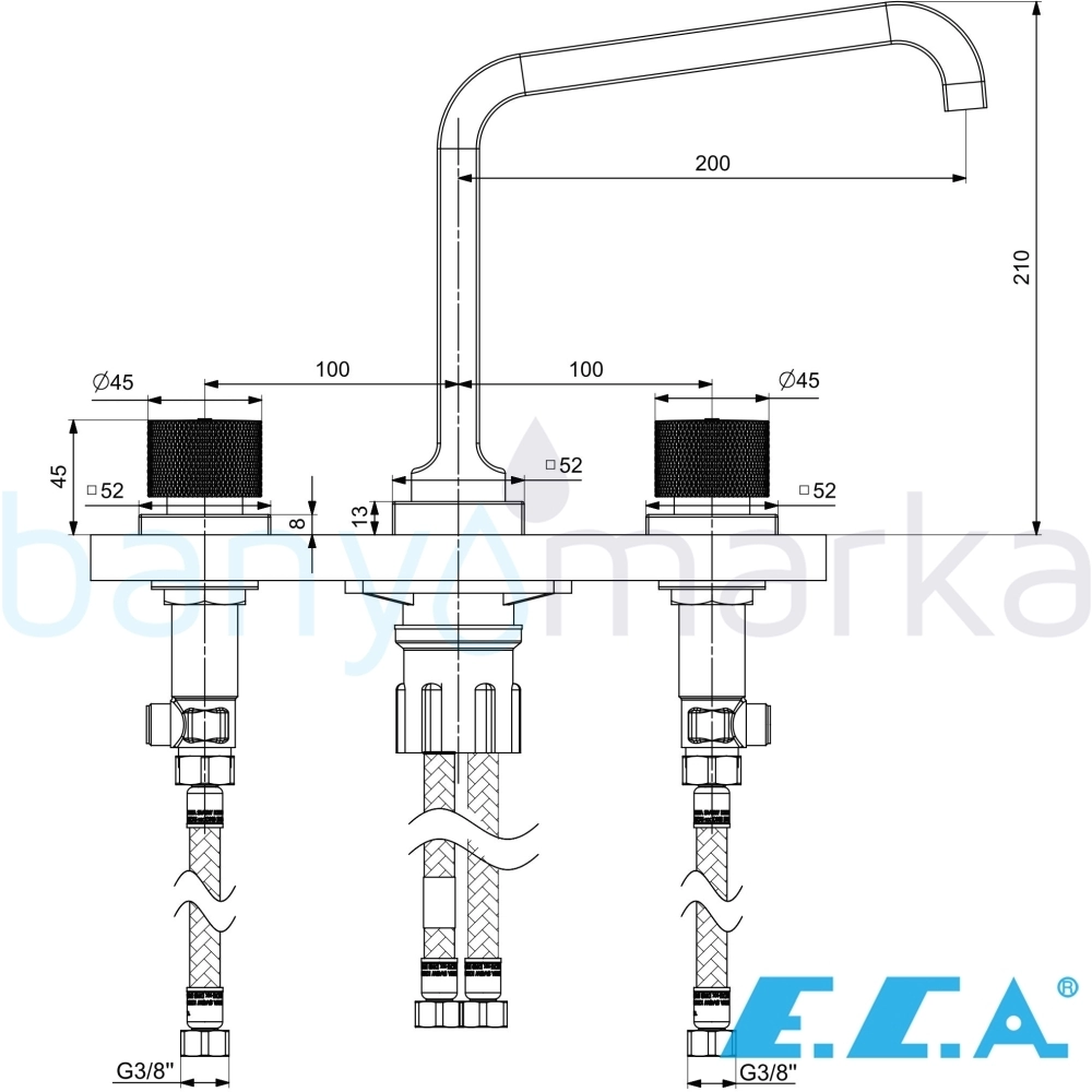Marka: E.C.A Ürün Adı: ECA Life 3 Delikli Kuğu Borulu Ankastre Lavabo Bataryası, Mat Siyah Ürün Kodu: 102105777C1 Seri: Life Yüzey Rengi: Mat Siyah Su Tasarrufu: Yok Enerji Tasarrufu: Yok Çıkış Ucu Uzunluğu: 200 mm Çıkış Ucu Yüksekliği: 169 mm Perlatör Özelliği: Standart Açma / Kapama: 90 derece açma/kapama Fotosel Özelliği: Yok Sifon Kumandası: Yok Ücretsiz Montaj: Yok Yetkili Servis Hizmeti: Var Garanti Süresi: 20 yıl Üretim Yeri: Türkiye Uyarı ve Genel Açıklamalar: Çıkış ucu uzunluğu 200 mm dir. Çıkış ucu yüksekliği 169 mm dir. Kireç kırıcılı gizli dikdörtgen perlatöre sahiptir. 360 derece döner çıkış uçlu. 3 bar basınçta su akış miktarı dakikada 9 L. Garanti Bilgisi:20 Yıl E.C.A garantisi -