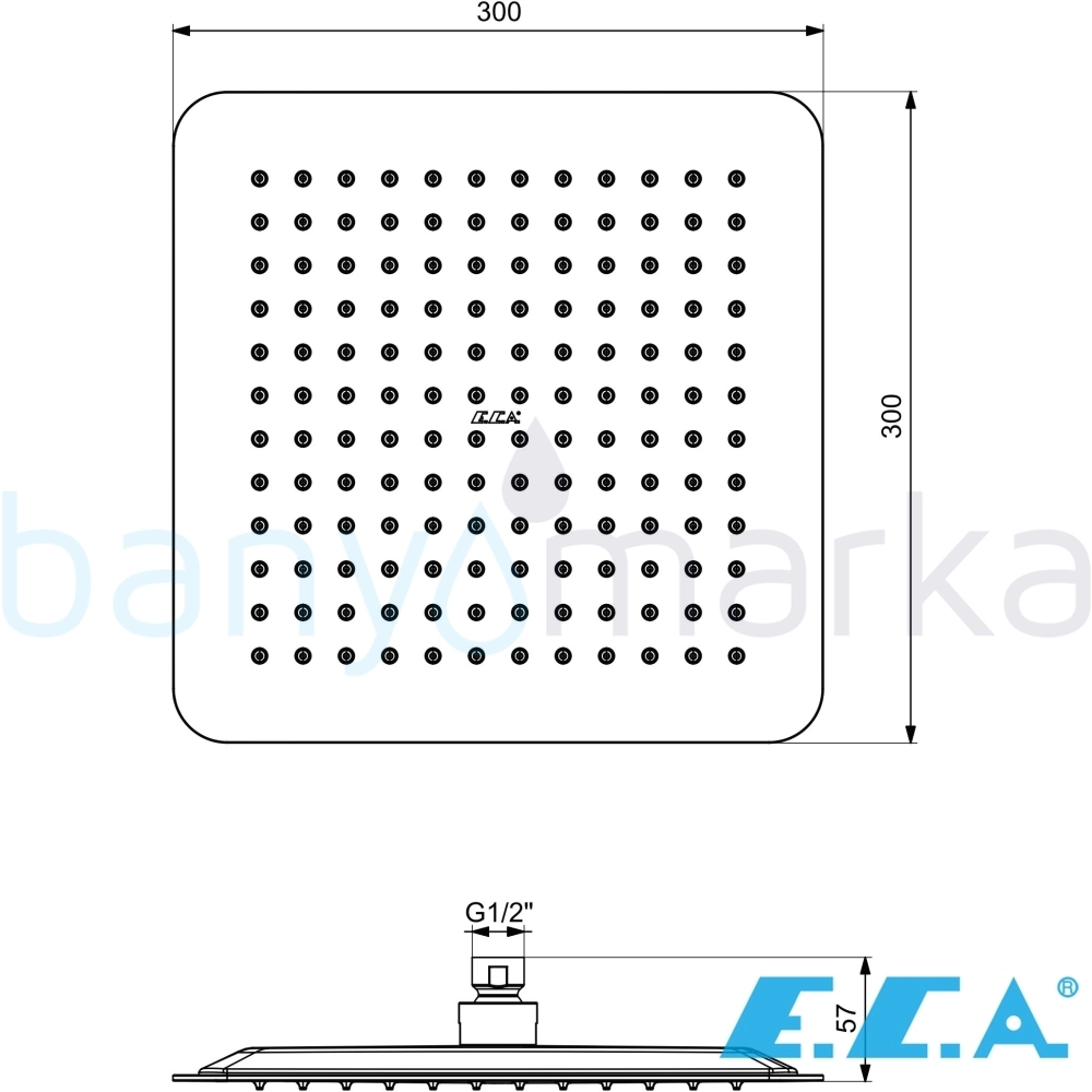 ECA Life Duş Başlığı, 30x30 cm, Mat Siyah - 102145777C1