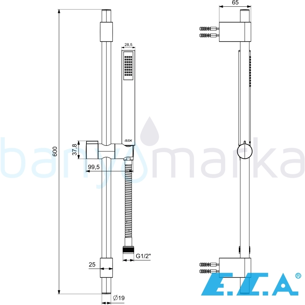 ECA Life Sürgülü Duş Takımı, 1 Fonksiyonlu, Mat Siyah - 102146777C1