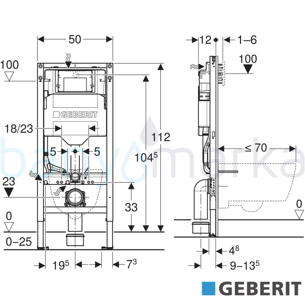 Geberit Sigma Gömme Rezervuar Duvar Önü Alçıpan Uygulamalı Set, Kalın, Duofix (112 cm)