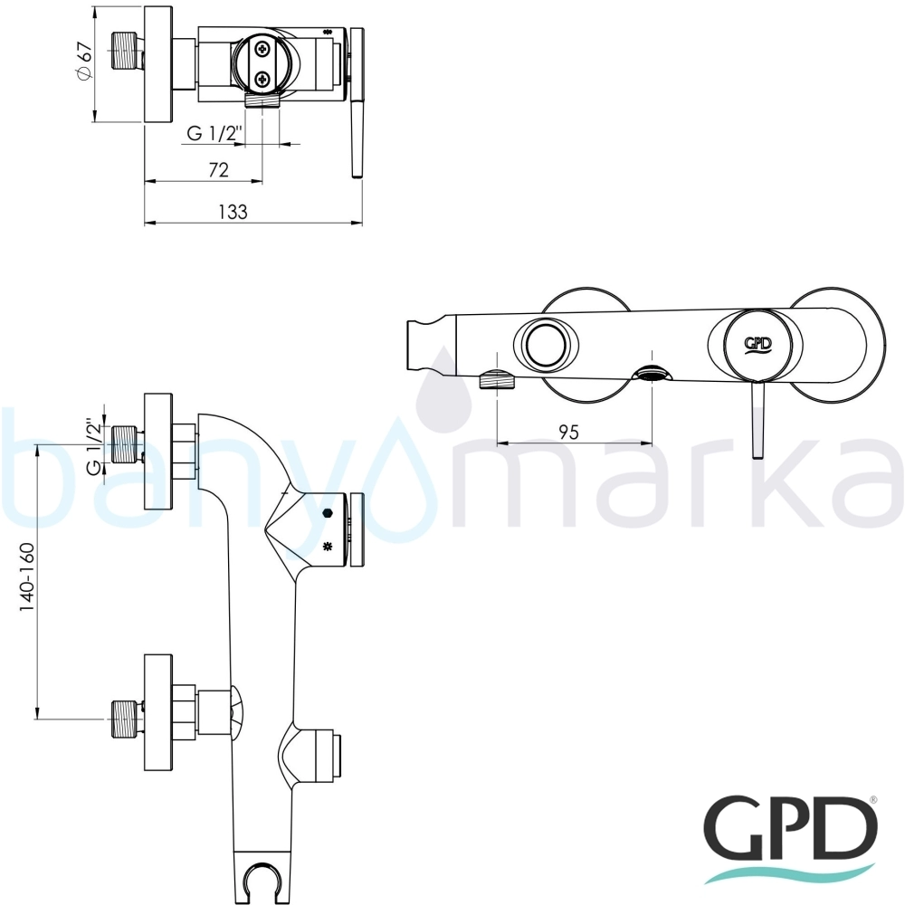 Marka: Gpd Ürün Adı: GPD Aduro Banyo Bataryası, Fırçalı Nikel Ürün Kodu: MBB195-FN Seri: Aduro Yüzey Rengi: Fırçalı Nikel Su Tasarrufu: Var-perlatör ve kartuş ile Enerji Tasarrufu: Var-kartuş ile Çıkış Ucu Uzunluğu: 61 mm Açma / Kapama: Tek kumandalı Kartuş Özelliği: Isı ve debi ayarlı Kartuş Çapı: 35 mm Kartuş Markası: GPD Ücretsiz Montaj: Yok Yetkili Servis Hizmeti: Var Garanti Süresi: 5 yıl Üretim Yeri: Türkiye Uyarı ve Genel Açıklamalar: Gövde tasarımına uygun özel dikdörtgen aeratör (Köpüklü akış,kireçkırıcılı, debi değeri:10,5lt/dk)Hem el duşuna hem gövdeye 2 yönlü buton yönlendiricili kartuşÇıkış ucu uzunluğu 61 mmBatarya bağlantı dişleri 3/4"Eksantrik bağlantı dişleri 3/4"-1/2"Spiral hortum bağlantı dişleri 1/2"İdeal çalışma basıncı 3-4 BarTesisatta oluşabilecek her türlü kirliliğin armatüre zararını önlemek içindaire girişinde filtre kullanılması tavsiye edilir.