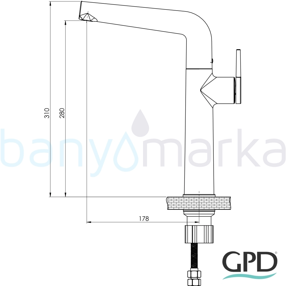 Marka: Gpd Ürün Adı: GPD Aduro Yüksek Lavabo Bataryası, Fırçalı Nikel Ürün Kodu: MLE195-FN Seri: Aduro Yüzey Rengi: Fırçalı Nikel Su Tasarrufu: Var-perlatör ve kartuş ile Enerji Tasarrufu: Var-kartuş ile Çıkış Ucu Uzunluğu: 178 mm Çıkış Ucu Yüksekliği: 280 mm Perlatör Özelliği: Gizli perlatör Açma / Kapama: Tek kumandalı Kartuş Özelliği: Isı ve debi ayarlı Kartuş Çapı: 35 mm Kartuş Markası: GPD Fotosel Özelliği: Yok Sifon Kumandası: Yok Ücretsiz Montaj: Yok Yetkili Servis Hizmeti: Var Garanti Süresi: 5 yıl Üretim Yeri: Türkiye Uyarı ve Genel Açıklamalar: Su tasarruflu özel aeratör (Köpük akış, kireç kırıcılı, debi değeri: 8 lt/dk). Döner borulu 360 derece. Çıkış ucu uzunluğu 178 mm. Çıkış ucu yüksekliği 280 mm. Sıcak ve soğuk su fleks hortum bağlantı ölçüleri M10x1-3/8 50cm. İdeal çalışma basıncı 3-4 Bar. Tesisatta oluşabilecek her türlü kirliliğin armatüre zararını önlemek için ürün ile birlikte filtreli ara musluk kullanılması tavsiye edilir.