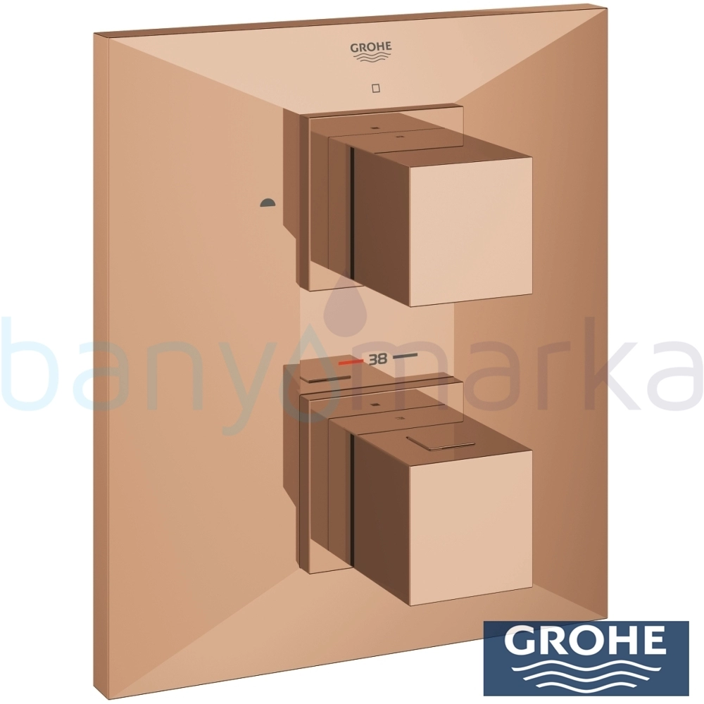 Marka: Grohe Ürün Adı: Grohe Allure Brilliant Termostatik Banyo ve Duş Bataryası, Bakır (Sıva Üstü Grubu) Ürün Kodu: 19792DA0 Seri: Allure Brilliant Yüzey Rengi: Bakır Tasarımcı: Grohe Ücretsiz Montaj: Yok Yetkili Servis Hizmeti: Var Garanti Süresi: 5 yıl Üretim Yeri: Almanya Uyarı ve Genel Açıklamalar: 35 500 000 iç gövde ile birlikte sipariş edilir, iç gövde hariç, GROHE StarLight krom kaplama, Grohe SafeStop Plus max. 50%B0C%u2019de sabitlenebilir sıcaklık, çok fonksiyonlu Aquadimmer:, - akış kontrolü, 2 çıkış için yön değiştirici, GROHE SmartFix gizli montaj sistemi